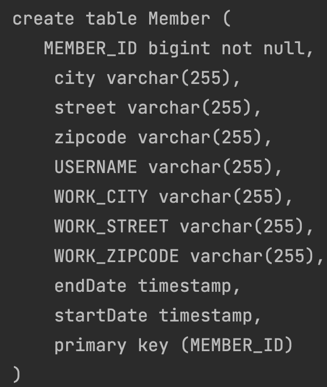 - 임베디드 타입을 사용하기 전과 후에 매핑하는 테이블은 같음