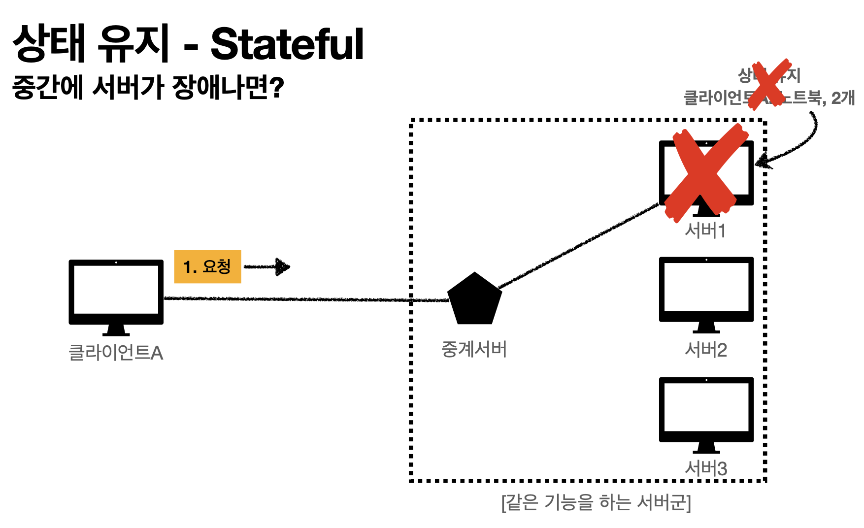 - Stateful, Stateless의 차이는 서버가 클라이언트의 상태 보존 유무
