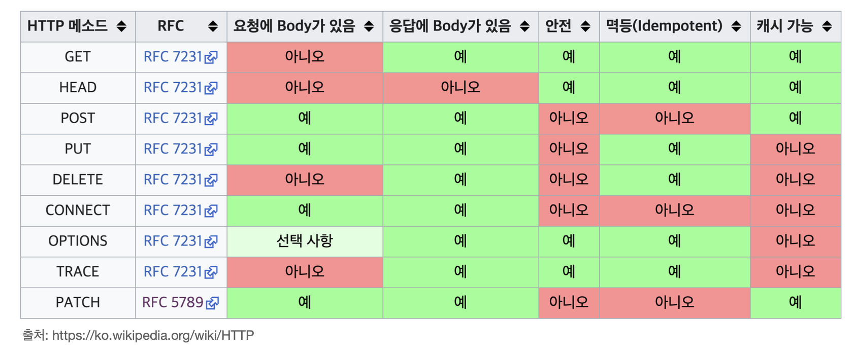- GET, HEAD, POST, PATCH 캐시 가능
