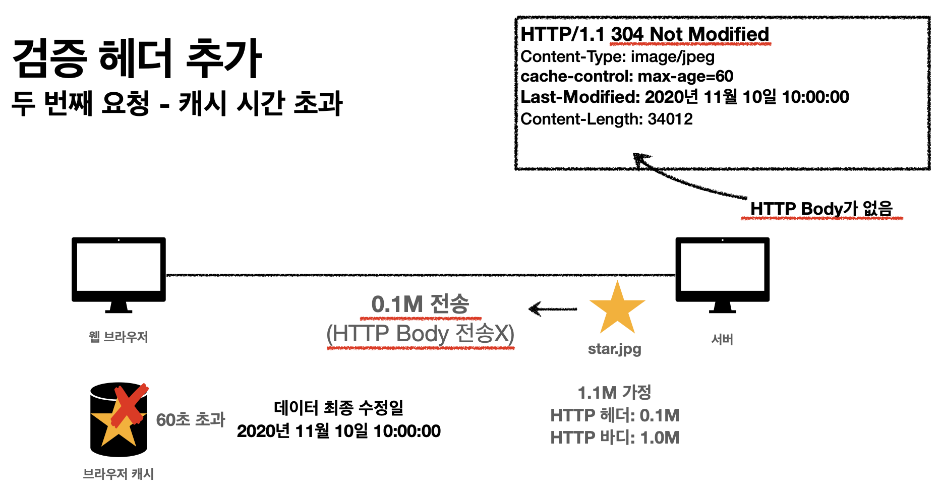 - 캐시에 원하는 데이터가 있으므로 HTTP Body를 전송하지 않음