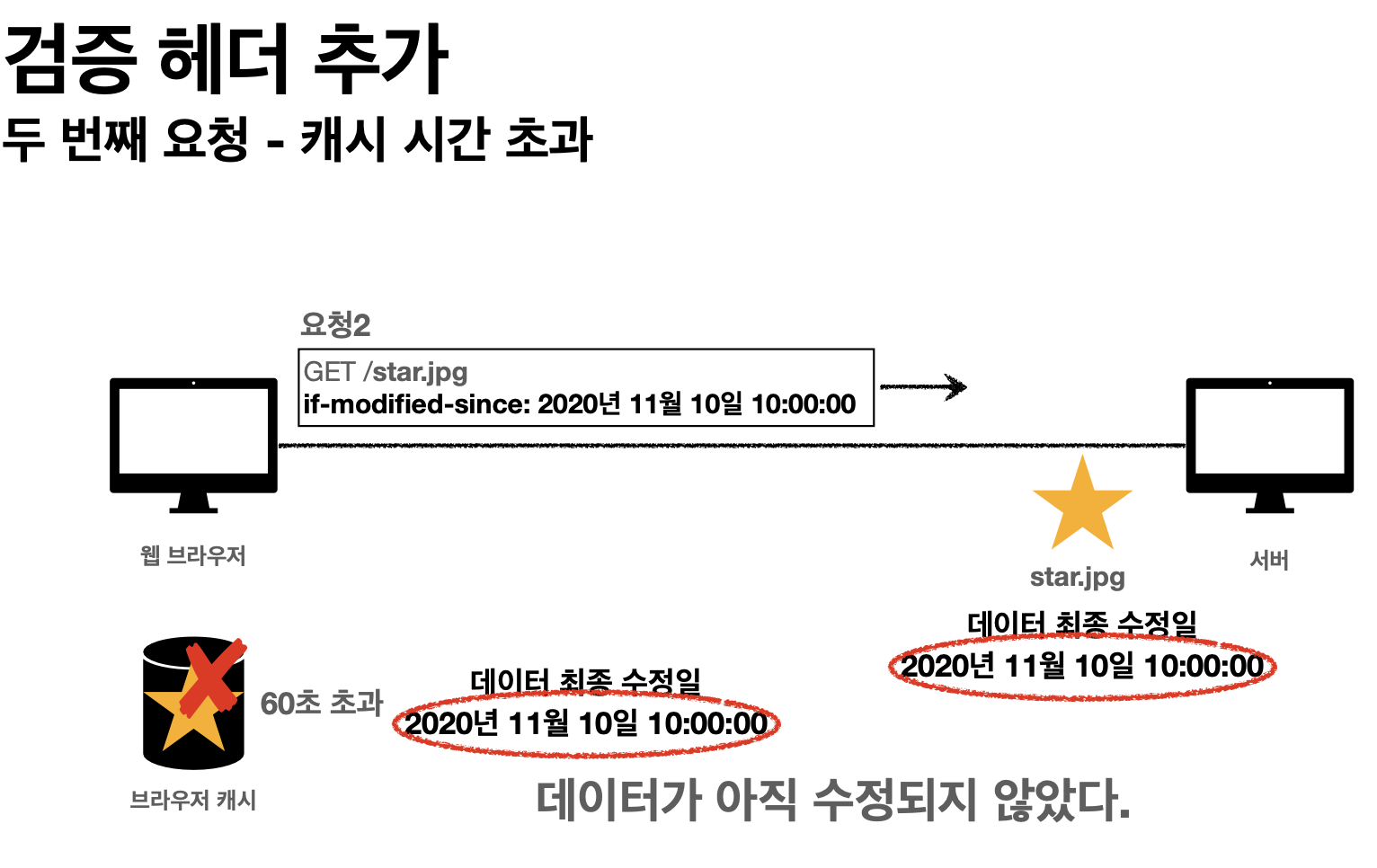 - 캐시 유효 시간이 초과 후 서버에 다시 요청 시 다음 2가지 상황이 나타남