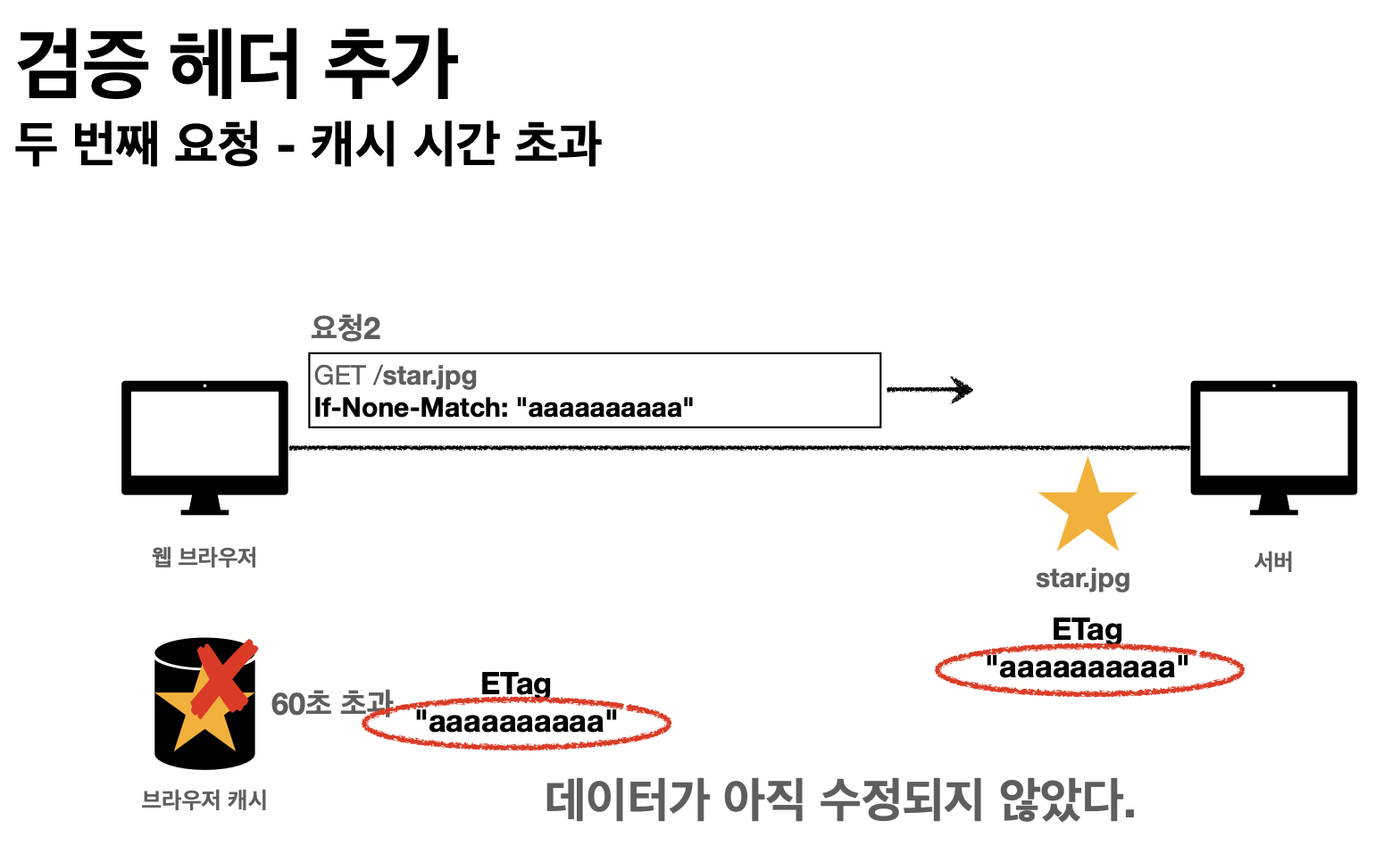 - 캐시 만료후에도 서버에서 데이터를 변경하지 않는 경우 데이터를 캐시에서 재사용 가능