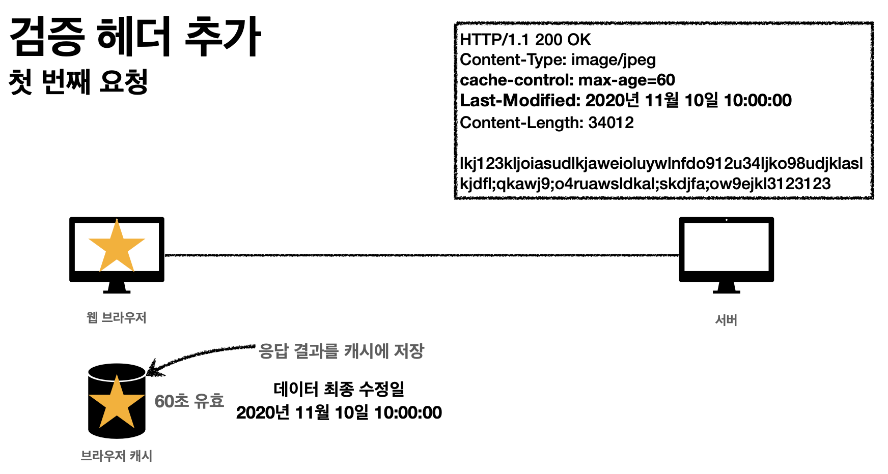 - 검증 헤더 : 캐시 데이터와 서버 데이터가 같은지 검증하는 데이터