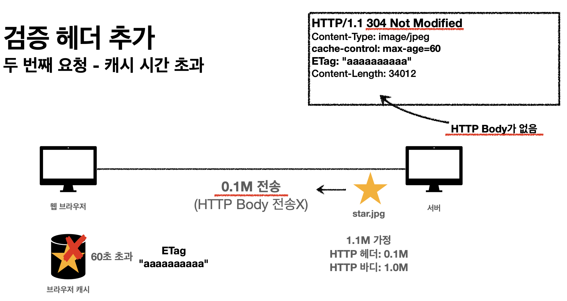 - 캐시에 원하는 데이터가 있으므로 HTTP Body를 전송하지 않음