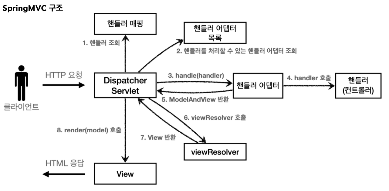 - 핸들러 어댑터 조회 : 핸들러를 실행할 수 있는 핸들러 어댑터를 조회