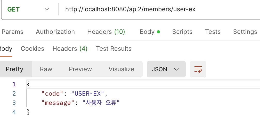 ErrorResult errorResult = new ErrorResult("USER-EX", e.getMessage());