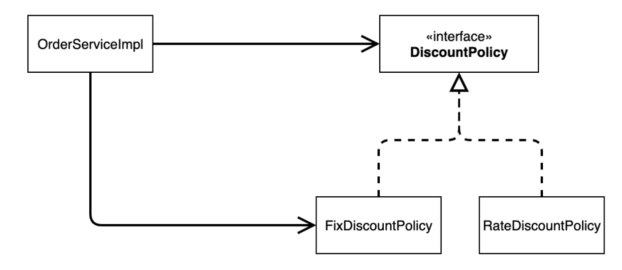 - 구현 클래스 의존 : FixDiscountPolicy, RateDiscountPolicy