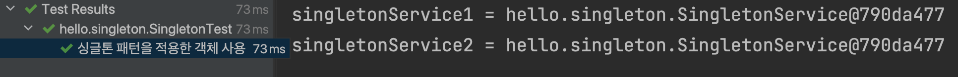 @DisplayName("싱글톤 패턴을 적용한 객체 사용")