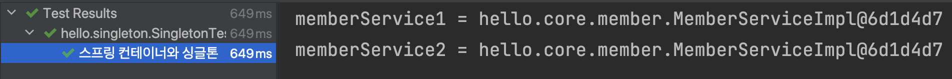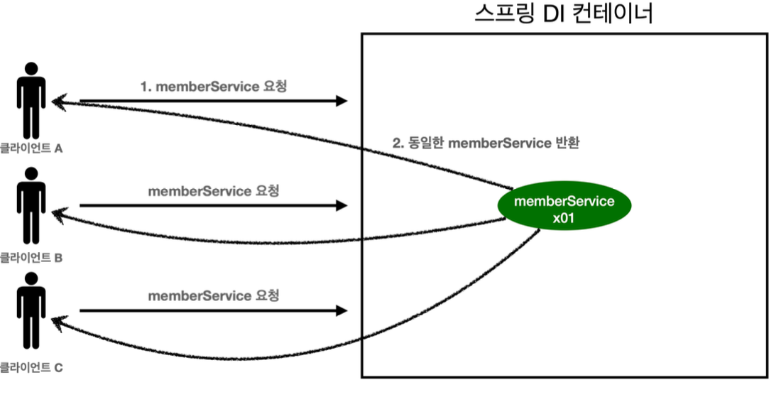- 호출할 때마다 같은 객체 인스턴스를 반환