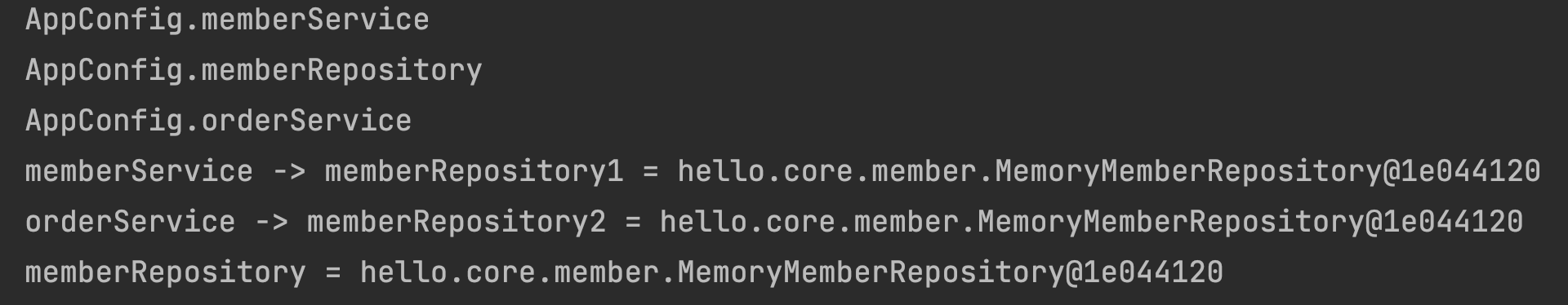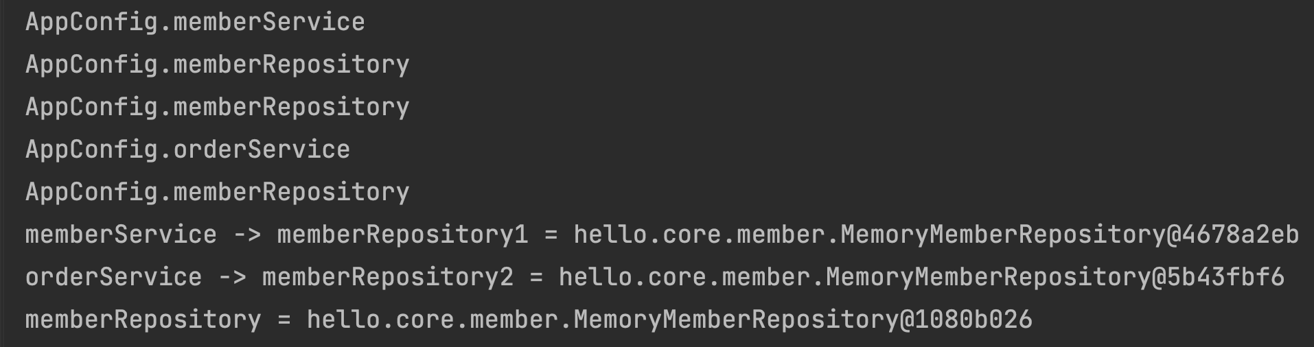 System.out.println("orderService -> memberRepository2 = " + memberRepository2);
