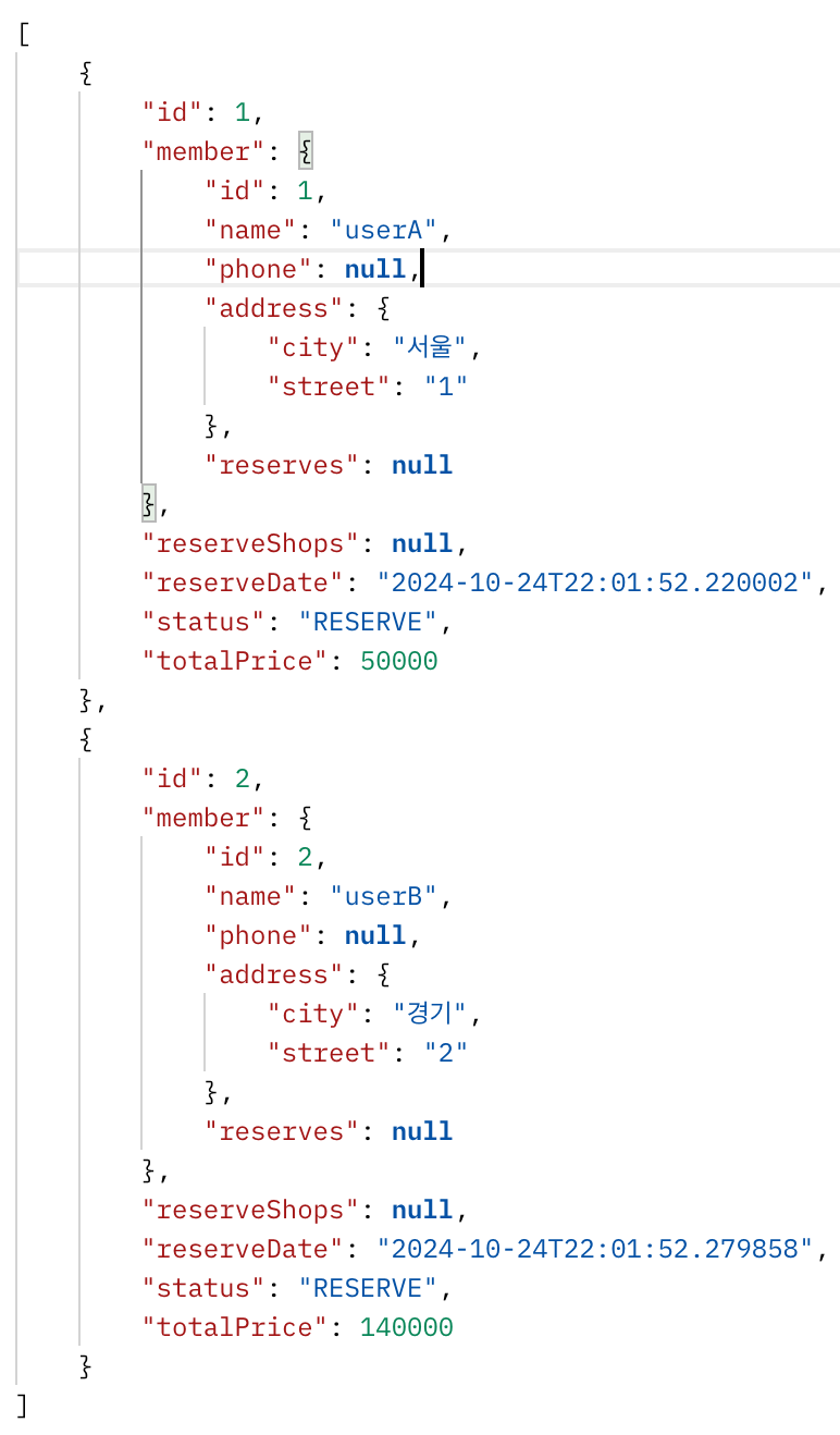 | 예약 리스트 조회 API 순환참조 해결 (0) | 2024.10.29 |