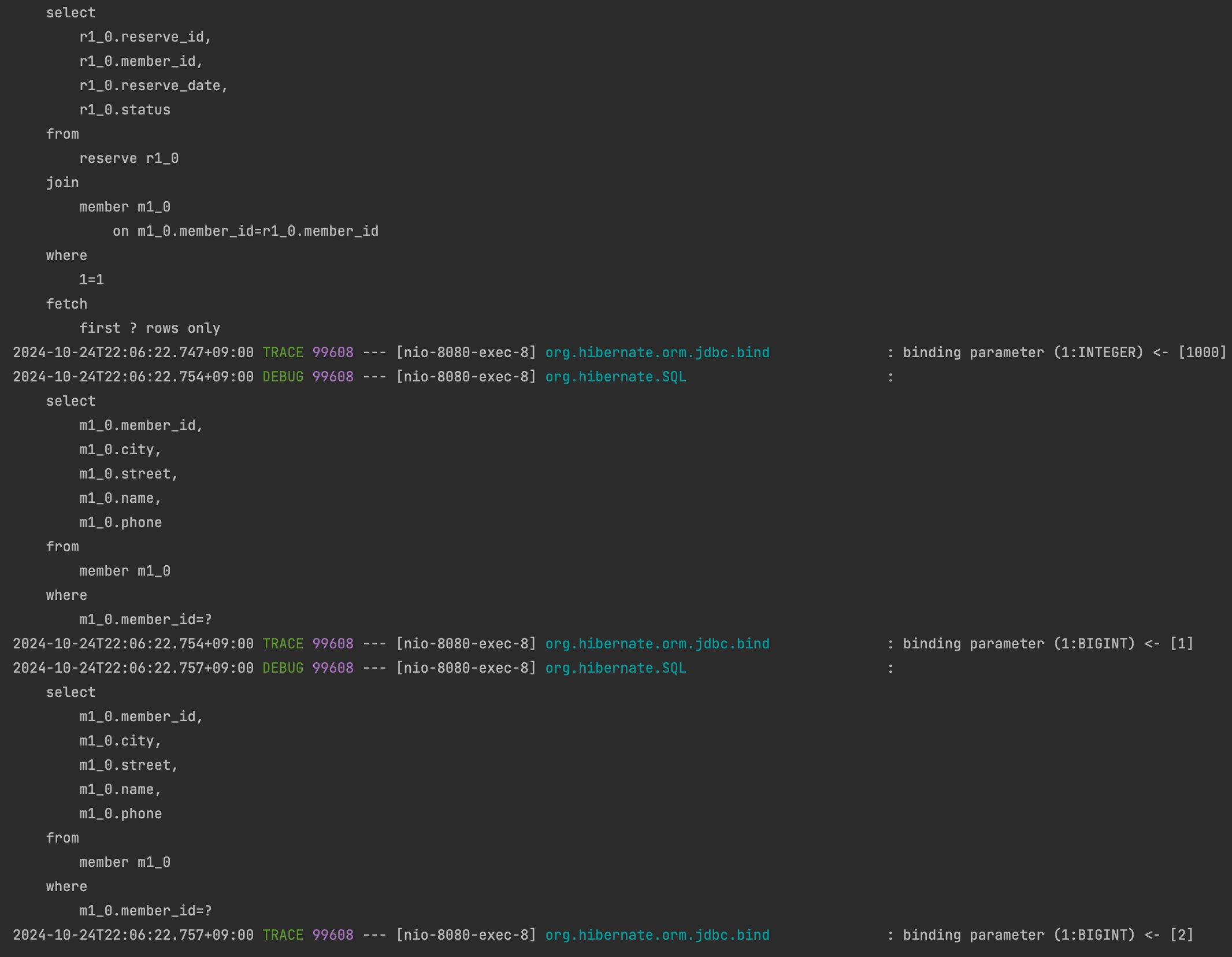 - 페치 조인으로 reserve -> member는 이미 조회 된 상태이므로 더 이상 조회 쿼리 X