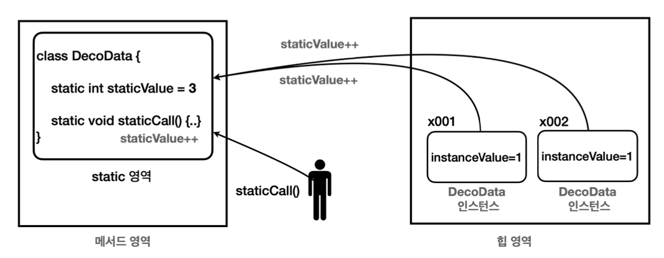 - 인스턴스 변수는 힙 영역에 동적으로 생성되고 제거되는 반면, static 변수는 프로그램 실행 시점에 만들어지고, 종료 시 제거되기 때문에 정적인 성질을 가지므로 정적 변수