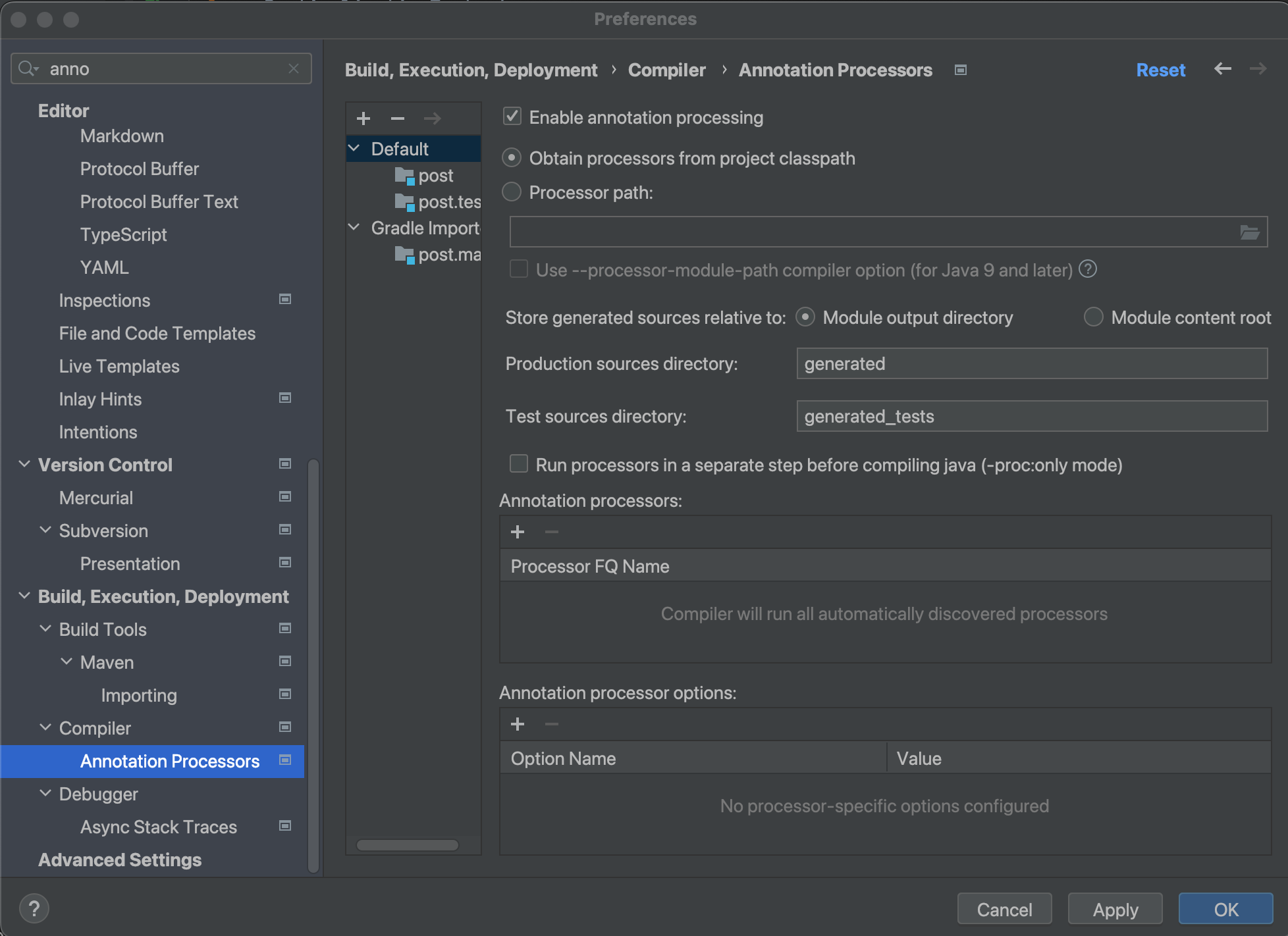 - 상단의 Enable annotaion processing 체크