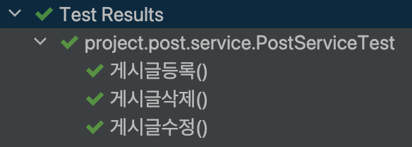 - 등록한 게시글을 조회한 뒤 삭제를 진행하여 상태값을 비교하여 정상적으로 게시글 삭제가 되었는지 테스트를 진행한다.