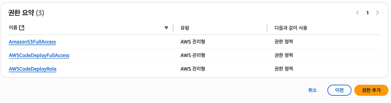 - AWSCodeDeployRole 권한만 추가한다.