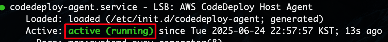 sudo service codedeploy-agent status # 실행 확인