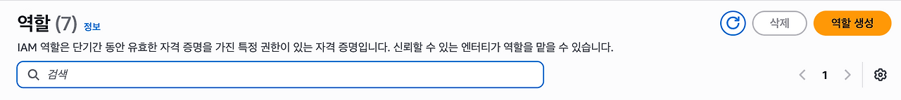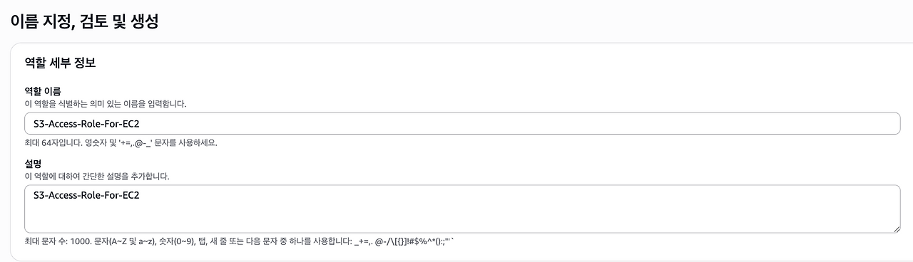- 역할 이름과 설명을 입력한 후 역할을 생성한다.