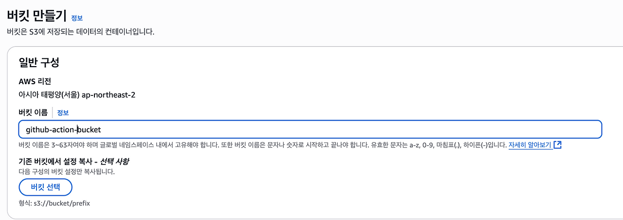 - GitHub Action을 통해 빌드한 jar 파일을 업로드하기 위한 S3 버킷이 필요하다.